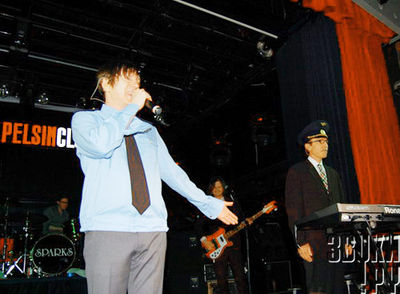 Прелесть группы Sparks заключается еще и в том, что она не дает расслабляться - мгновенно за этим знаменательным событием на сцену вышел облаченный в серый костюм и красный шарф Расселл. Зазвучали первые аккорды легендарной "Achoo", и публика ахнула - стало ясно, что тягостное ожидание закончено.