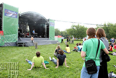 | Стрим, Рамблер раздавали пледы, футболки, кепки и сидушки. Стрим и Сони организовали интернет-кафе. Можно было посидеть с ноутбуком, выпить БЕЗАЛКОГОЛЬНОГО мохито и получить диск с музыкой. |