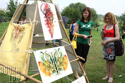 Рядом молодые художники представляют свои работы. |