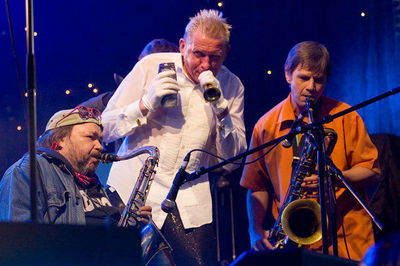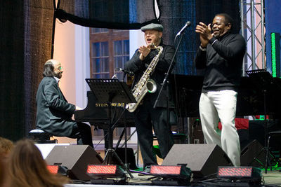 "Усадьба - 2009" показала-таки нескольких хэдлайнеров, которые без всяких скидок на финансовые нюансы этого года выглядят звёздами мирового масштаба. Пожалуй, тут стоит выделить три состава, по нарастающей. Первый из них - наш соотечественник, оркестр имени Олега Лундстрема, самый "долгоиграющий" из ныне действующих джазовых биг-бэндов планеты; сам факт его приписки к городу-герою Москве не должен никого смущать, поскольку формула "нет пророка в своём отечестве" давно доказала свою истинность. Состав завершал фестиваль на самой джазовой его сцене, "Аристократе", и уже в темноте, под дождём, под его зажигательную музыку танцевало несколько сот человек - чем не показатель?.. Второй из "большой тройки" - проект Funk Unit замечательного шведского тромбониста Нильса Ландгрена (Nils Lundgren), соратника самых разных звёзд самой разной музыки (от ABBA до голландских джазовых авангардистов): программа этого состава, показанная на "Партере", тоже не обошлась без танцев. Ну и, наконец, безусловный хэдлайнер всего фестиваля - американский саксофонист Брэнфорд Марсалис, находящийся в самом расцвете творческих сил представитель самого что ни на есть современного джаза, одинаково далёкий и от развлекательного мейнстрима, и от заумного авангарда.