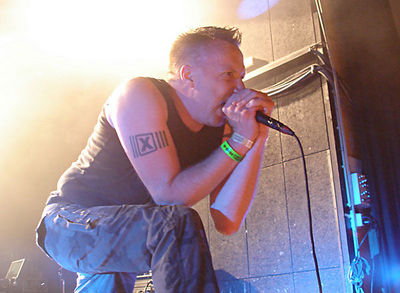 EBM – сокращение от electronic body music (электронная музыка тела) – ответвление индастриала, музыка, представляющая собой электронные танцевальные марши с искорёженным вокалом и сумрачной лирикой. Музыка для любителей мрачных и агрессивных дискотек. Насколько мрачных? Скажем, уже упомянутые бельгийцы Suicide Commando свой последний альбом назвали "Bind, torture, kill" ("Связать, пытать, убить"), а это не что иное как реальный девиз реально существующего маньяка (упомянутого выше Денниса Рейдера, убившего однажды целую семью). А в клипе на "We are the Sinners" – песню с этого альбома – лидер группы Йохан Ван Рой (Johan Van Roy) предстаёт в образе смертника. Он сидит на электрическом стуле, ожидает казни и поёт о беспощадном правосудии, уничтожающем как виновных, так и невинных (тут можно вспомнить, как вместо Чикатило по ошибке расстреляли невиновного человека).