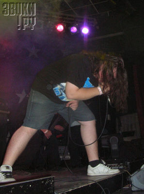 Следующими на сцену поднялись брутальные парубки из команды Rigorism. Интересно, почему все исполнители death metal, адски замогильные по игре, все как на подбор, добрые и плюшевые по жизни? Во главе этой костромской группы громоздится упитанный пухлощекий очкарик Павел Селиверстов, умеющий петь голосом разъяренного медведя, у которого только что увели из-под носа горшочек меда. От сонма других дэт-групп эту отличает умелое использование гитаристом Львом Сергеевым атмосферной комьютерной подкладки под свои "режущие все плотское" риффы и соло. На рубеже 80-х и 90-х некоторые исполнители дэт-метал пытались с разной степенью успеха экспериментировать с симфоническим сэмплами. Сейчас таких осталось намного, и приятно, что костромчане не только не забыли, но и продолжают эту практику. Субъективно - совершенно не моя музыка, объективно - парни знают, что делают.