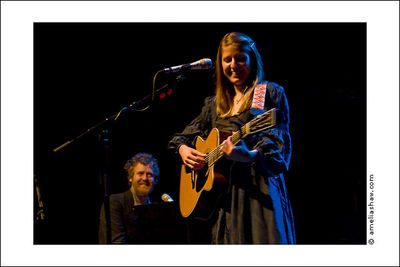 Забегая вперед, скажу, что аналогичное желание – поблагодарить музыкантов лично – возникло у меня и несколько дней спустя. Но The Swell Season, в отличие от Travis, делают в последнее время крупные карьерные успехи, поэтому им достался зал побольше и посолиднее – l’Olympia de Montreal. Тем не менее, ощущение, что и здесь все будет по-домашнему, не покидало с первых секунд, когда Глен Хансард (Glen Hansard) присел у микрофона с той самой, бывалой и дырявой гитарой, а Маркета Ирглова (Marketa Irglova) заиграла на игрушечных клавишных "Fallen from the Sky" из того самого х/ф "Однажды".