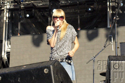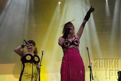 Представьте себе двух тетенек (на девушек они уже по возрасту не совсем тянут), обряженных в эклектичные наряды ядовитых цветов, которые выдают сумасшедший по энергетике диско-фанк. За двадцать минут они сумели сделать то, чего не удавалось на фестивале никому - вся толпа, буквально вся, даже автор этих строк, начал прыгать и приплясывать. А тетеньки продолжают веселиться, устроив на сцене мини-стриптиз - платья и туфли сброшены, дамы лихо отплясывают в купальниках, демонстрируя неплохую физическую форму.