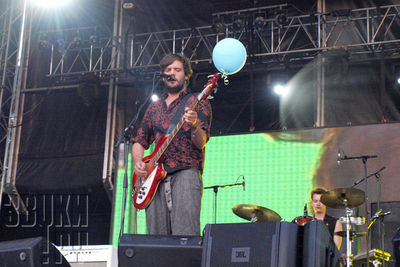 Правда, Райтон несколько щадил горло, минимизируя свое вокальное участие в общей музыкальной канве. В основном все песни пел басист Джейми Рейнольдс (Jamie Reynolds). Он вообще решил подурачиться как следует: привязал к грифу баса голубенький шарик, проиграл с ним пол-концерта и чуть не сорвал исполнение "Gravity's Rainbow" - на ней мини-аэростат отцепился и взмыл вверх, под софиты. Джейми остановился, прекратил играть и уставился вверх, провожая взглядом улетающий шарик. Юноша плачет, шарик улетел.