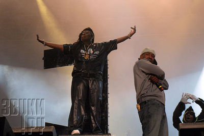И вот, разгорячившись после хорватских плясок, толпа скандирует: "Мисси! Мисси!" - пришло время Злобной Черной Мамаши, встречаем Мисси Эллиотт. На сцену вытаскивают ди-джейский пульт и набор кубиков с буквами. Кубики ставят один на другой, по вертикали складывается слово "Missy" - и вуаля! - цирк приехал, нехитрый фокус - кубики раскрываются и Жануария хип-хопа явила толпе свой одутловатый лик.