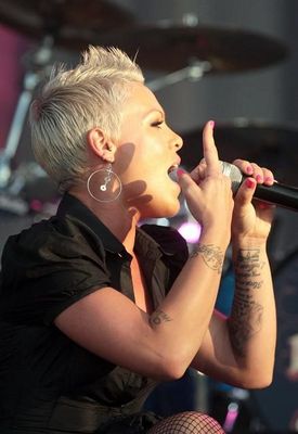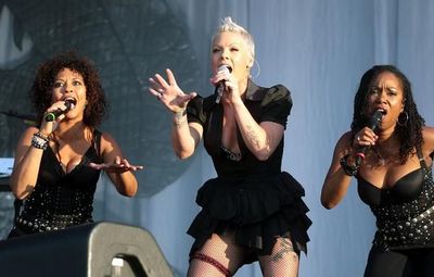 Пинк максимально расслаблена – изображает кокетку, пытается в шутку изобразить мощный черный вокал, несколько модернизирует свои одеяния – меняются юбки, платье отшвыривается, чтобы обнаружить под собой купальник. Женщина-огонь.