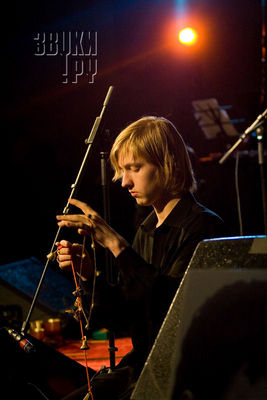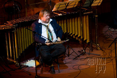 Следующими на сцену вышли представители современной академической музыки - участники ансамбля ударных инструментов под руководством Марка Ильича Пекарского. Этот известный и авторитетный ансамбль существует с 1976 г. В нынешнем составе ансамбля задействованы молодые музыканты - Владимир Урбанович и Игнатий Матюхов (оба - маримба), на колокольчиках играли Ярослав Шевченко, Илья Фадин, Елисей Дрегалин и Евгений Полтораков. С технической точки зрения это было самое ответственное выступление – специально привезенное оборудование (маримба, вибрафон, стойка с плоскими колоколами и т.д.) заняло целую «Газель».