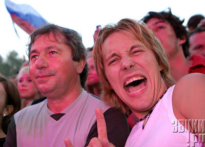 Владимир: И быстрее тоже (смеется). Я не думаю, что тяжелая музыка будет куда-то развиваться, потому что она давно стала классической. Процесс генерации устойчивых прототипов завершен, дальше начинается либо компиляция, либо смешение с другими стилями. Сыграть быстрее и тяжелее уже нельзя, но можно добиваться более качественного звучания и более качественной записи с помощью современной техники. Если сравнить записи 1980-го года и сегодняшие – конечно, различие существенное. А сама музыка по-прежнему использует те находки, которые были в конце 70-х – начале 80-х. Больше того – группа Black Sabbath еще в начале 70-х играла на гитаре в пониженном строе, записывая две гитары в унисон, и перегрузка усилителя была примерно такой же, как сейчас. Так что всё, что мы делаем – усовершенствуем придуманное 40 лет назад. А пути развития я вижу в смешении с другими жанрами, даже необязательно музыкальными. Аудиозапись как таковая перестает играть ту главенствующую роль, которую она играла в молодости для нас. Мы каждую пластинку ждали, как праздника: новые диски Pink Floyd или Uriah Heep изучались от корки до корки, от буквы до буквы. Каждая фотография, каждая буква текста, каждая указанная на диске фамилия – все училось наизусть. Попробуй сейчас кому-нибудь предложить прочитать в буклете “спасибы” – нынешние покупатели и названия песен-то не считают нужным прочитать. Музыка стала элементом каждодневного фона, более доступной и распространенной. Возможно, следует ожидать ее смешения с видеорядом, с компьютерной графикой. Это уже происходит. Но новые жанры пусть осваивают молодые группы, а нам нравится играть музыку, изобретенную в прошлом веке. Единственное, что нас удивляет – почему на концертах столько молодых лиц. Мы специально для этого ничего не делаем.