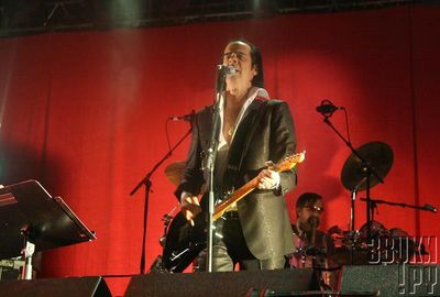 Но силы надо поберечь - впереди выход главных хулиганов фестиваля. Пока Ник Кейв (Nick Cave) готовится к выходу, с ним даже удается перекинуться парой слов. На сцене же Кейв выдает ровно то же, что мы могли видеть на концерте в Москве: все то же шаманство, помноженное на фирменную истерику от Уоррена Эллиса (Warren Ellis). После первой песни Кейв отправляет журналистов вон и фотопита, нахально помахивая им ручкой и выдавая формального пинка. Когда-то в Bad Seeds именно так провожал журналистов бывший коллега Кейва Бликса Баргельд, а теперь Кейв стал главным enfant terrible фестивальной программы.