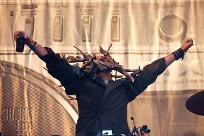 А вот от этих молодых бизонов я ожидал большего. И дебютная пластинка, и восторженные отзывы зарубежной прессы давали надежду на то, что выступление перспективных британцев станет весьма и весьма запоминающимся. В результате - запомнилась разве что виртуозная барабанная работа Джонни Рогоффа (Johnny Rogoff) из-за которой, собственно, и стоило посетить этот сет. В "Get Away" он вытворяет что-то невообразимое, с очень сильными акцентами по малому барабану и форсированной бочкой, благодаря чему, в общем-то, простой и немудреный ритм становится в разы богаче и насыщенней. А вот Дэниэл Блумберг (Daniel Blumberg) так и простоял весь концерт флегмой, отпеая свои партии и не делая даже попытки наладить контакт с публикой. Обидно, однако.
