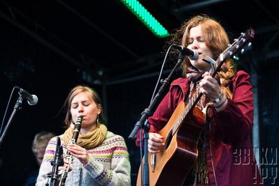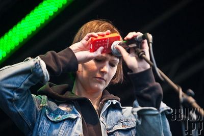 Милая норвежская авангардистка Ханне Колсто влюблена в лупы и бэк-сэмплы. У девушки осенью выходит дебютный альбом, так что на фестивале она показала все самое интересное, на что способна. Ханне выходит на сцену с гитарой и кучей разнообразных странных предметов: кружек, стаканов, игрушек-пищалок, детских синтезаторов. Из всего этого она прямо на наших глазах создает музыку - вот она ударила по стакану и записала "дзынь", а потом пустила его "в кольцо". Потом поверх дзыньканья стакана записывается писк детской игрушки, потом - удар ногой по сцене, потом, например, свист - и из всего этого Ханне выстраивает красивые, в основном печальные и сложные мелодии, поверх которых она и поет. Зрелище впечатляет, правда, сама Ханне несколько волнуется и держится на сцене немного неуверенно, но с опытом это пройдет. Очень достойный и необычный сет.