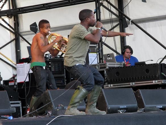 В 2009 году на фестиваль Flow в Хельсинки мне довелось наблюдать картину, поразившую мое воображение и надолго отпечатавшуюся в памяти. Часов в пять вечера (что, по меркам большинства летних оупен-эйров, эквивалентно раннему утру), когда большинство посетителей лениво потягивают пиво, валяются на травке или приглядываются к майкам на стойке мерчендайза, на главную сцену вышел ансамбль из девяти чернокожих музыкантов. За каких-то полчаса четыре трубача, два тромбониста, ударник, баритонист и парень с тубой подняли на ноги зрителей, заколдовали и закружили их в танце. "Я говорю "I get the party started", вы говорите "We get the party jumped", - и точно, через десяток тактов скупые на эмоции финны пляшут и поют. Это была чистая магия, музыкальный шаманизм, где-то между сценой, открывающей сериала "Treme", когда жители разрушенного ураганом Нового Орлеана танцуют под музыку уличного оркестра, и вечеринкой под гусли-самогуды при дворе Водокрута Тринадцатого. "Эй, левая нога... Эй, правая нога!"