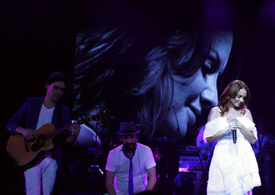 Сама певица явно довольна происходящим на сцене и благодарит публику за любой отклик и за многочисленные цветы и подарки. Говорит о необходимости любить друг друга. В финале основной части программы даже выводит на сцену свою дочку. И потом, не дожидаясь нестройного хора публики, заряжает два биса подряд - с неизменной "Знаешь ли ты" и хулиганской "Одиночкой" напоследок.