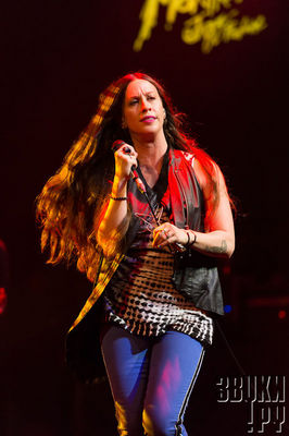 А вот и канадская сирена Аланис Морисетт (Alanis Morisett), послушать которую съехался весь поп-истеблишмент. Как раз сейчас поп-звезда дает большое европейское турне, поэтому особенно интересно, как она изменит сет-лист. Сквозной темой вечера стала "I Remain" , исполненная тремя частями в начале, середине и финале шоу. К ней в нарезку идет отчаянный вокал в любимой многими "Woman Down" и свежем сингле "Guardian", под свет мобильников хором поется гимн женскому освободительному движению "You Oughta Know" и "All I Really Want" - логично, что когда дойдет до бисов, Аланис исполнит "Hand In My Pocket". Зато один номер приятно изумил: в качестве intro к одной из песен певица исполнила трогательное и залихватское соло на губной гармошке, которое отлично подхватил и развил клавишник Майкл Фаррелл (Michael Farrell).