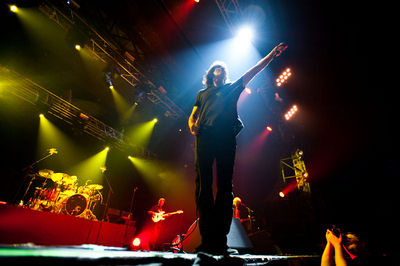 И сразу с места в карьер "Roadhouse Blues". За барабанами Тай Деннис (Ty Dennis), на басу Фил Чен (Phil Chen), слева, за клавишными Рэй Манзарек (Ray Manzarek), справа – Робби Кригер (Robby Krieger), в центре, в роли Моррисона – вокалист из кавер-банды Wild Child Дейв Брок (Dave Brock). Arena Moscow в полном экстазе вторит хором: " Let it roll, baby, roll. All night long!"