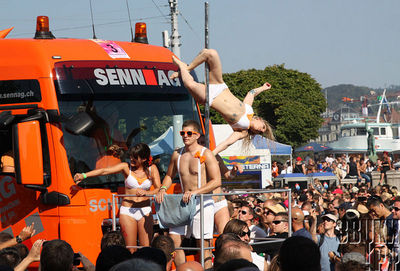 Каждая встреча на Street Parade может стать открытием: пока солнце в зените, под Turntablerockers могут весело плясать две райских птички. |