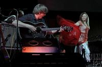 Хедлайнер первого дня WOMAD, Поля собрала перед сценой всех замерзших и продрогших - и зарядила сет из мрачных лирических баллад про смерть, кровь и ужасы. Когда я позже спросила ее об этом, певица заверила меня, что репертуар у нее в последнее время все больше минорный: "У нас и в обычных концертах такое сочетание: "Ну почему, мы исполнили сразу 2 веселых песни - "У колодезя вода" и "Горилка"! И... еще 4. Но у нас и в обычных концертах такое соотношение: 20 грустных - 5 веселых."