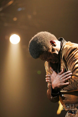 И все это перестает иметь значение, как только на сцену выходит плотный курчавый негр в золотой коже - и ты понимаешь, что без него эта музыка не самоценна. Потому что он просто встает, чуть раскачивается – и начинает плакать у тебя на глазах настоящими огромными слезами. Он поет о смерти брата, о разборках в Бронксе, о том, куда катится этот мир, и ты понимаешь, что надо срочно что-то делать. Тебя мгновенно охватывает смятение - настолько обнаженным выглядит этот человек на сцене. И голос его - действительно такой же чистый и честный, как у классиков соул и фанка.